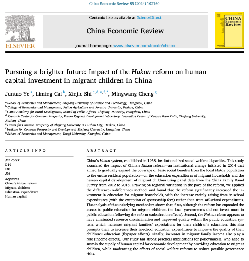 The Applied Economics Research Team has published a paper in an internationally authoritative journal