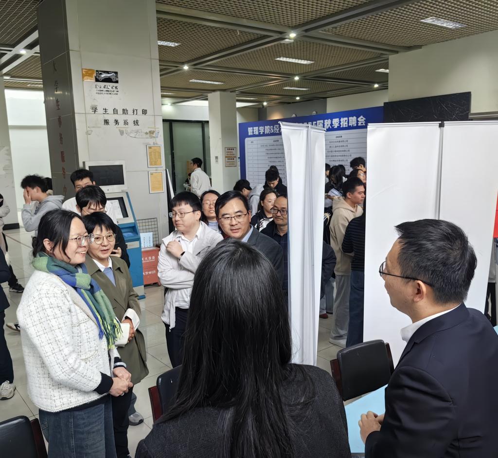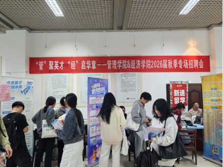 2025年11月6日13:30-16:00,管理学院与经济学院联合举办的专场招聘会在创业广场成功举行。学院院长董颖、党委副书记(主持工作)范佳静、副院长陈思静、副书记范俊强亲临招聘会现场,与到场企业和学生亲切交流,了解企业用人需求和同学们的职业发展意向。本次招聘会共吸引27家优质企业到场,涵盖金融、科技、贸易等多元领域,为学生提供了丰富的实习与就业机会。